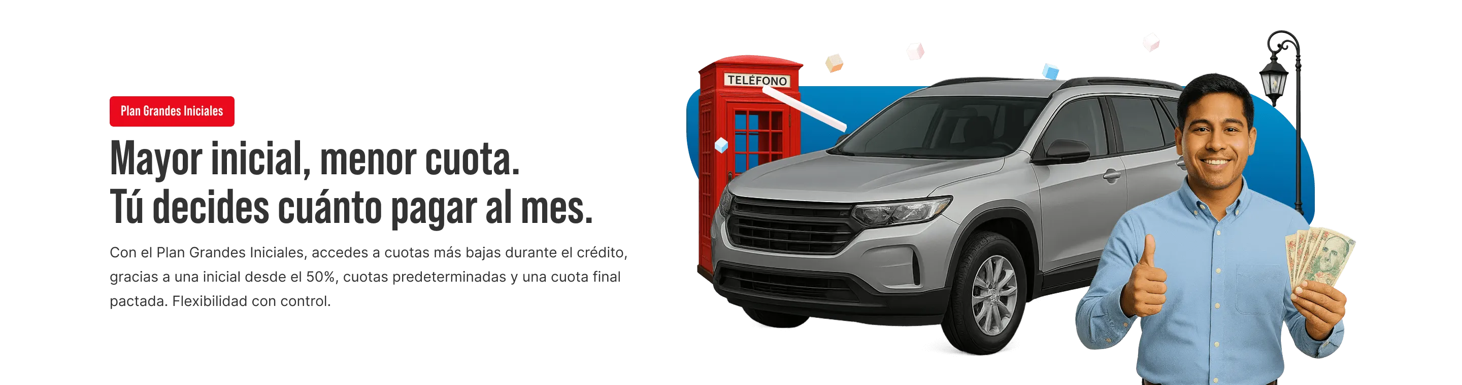 - Plazo de hasta 48 meses + 1 cuota final (cuota balón)