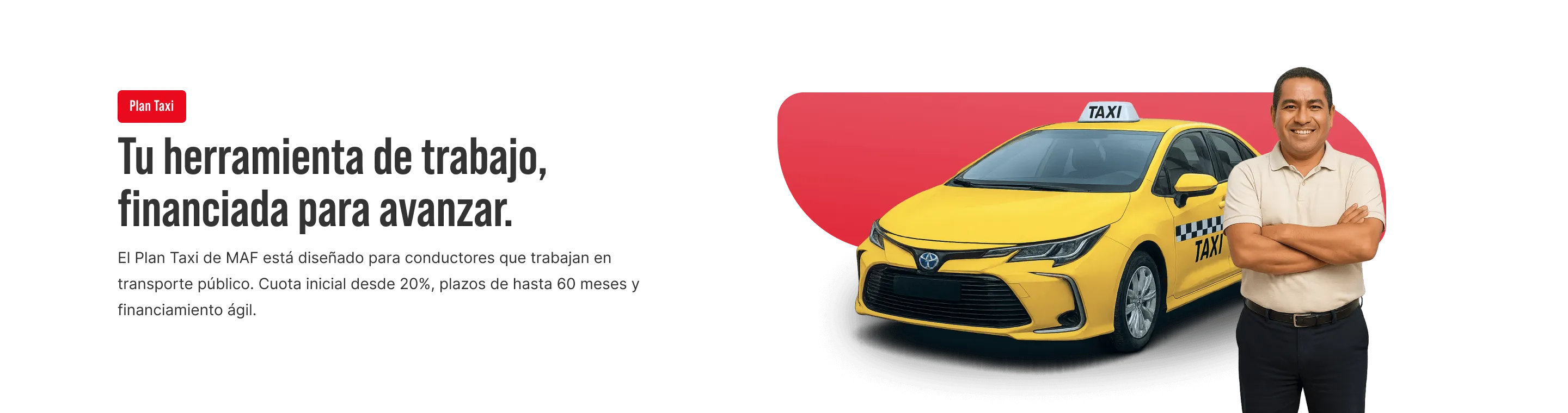 Es un plan dirigido a quienes desarrollan actividades de transporte público en modalidad de Taxi y necesitan adquirir su unidad con respaldo financiero, cuotas cómodas y evaluación clara.
